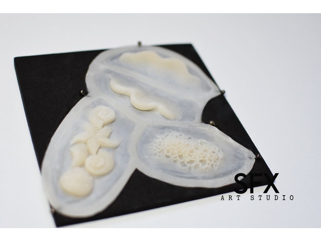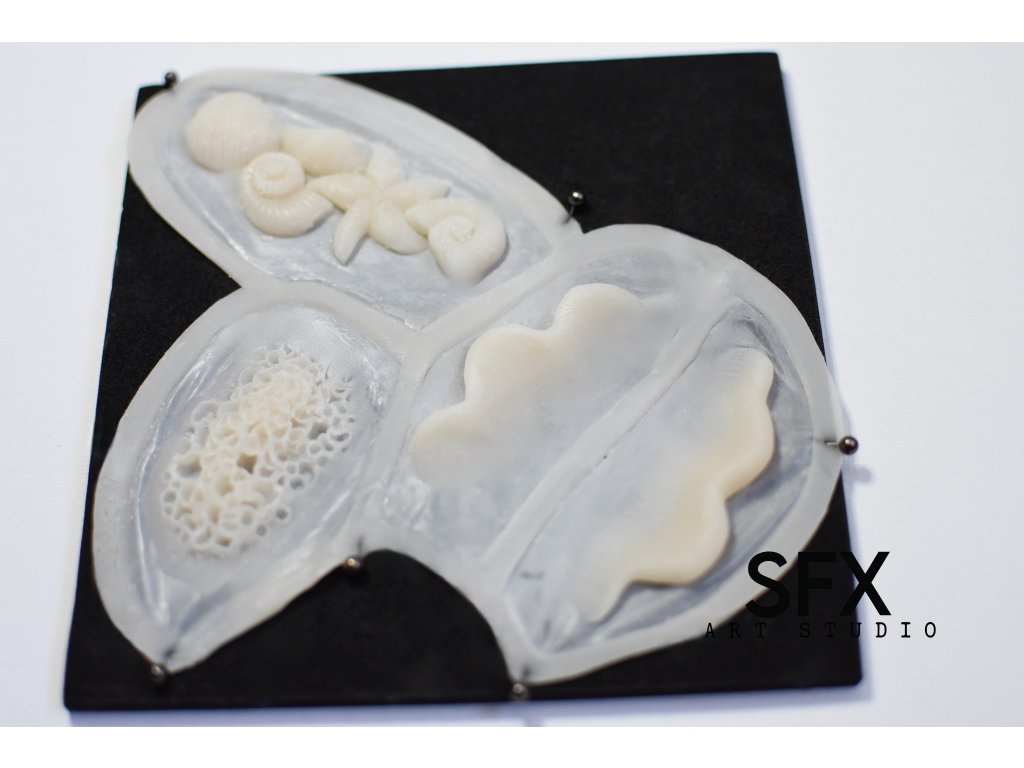 • 1x Detail korálu: Hustá, organická textura připomínající růst mořského korálu přímo z kůže.